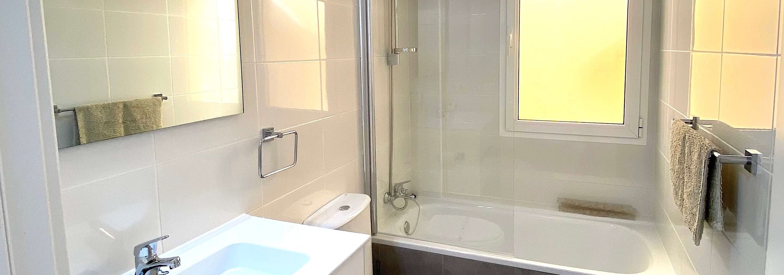 The bathroom includes a bath / shower, toilet, bidet and sink with vanity mirror and spotlights. Weekly bath and hand towels are provided.